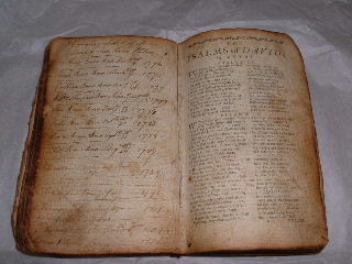 This bible was discovered in the the 1950s in an alcove behind the chimney of the This transcription was recorded in 2004. It contains entries from 1774 to 1801