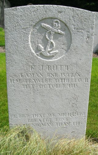 | F.J. Butt Seaman R.N.R. 1592 H.M. Trawler Orthello II 31 Oct 1915 ~ St. James Cemetery, Dover, Kent, England |