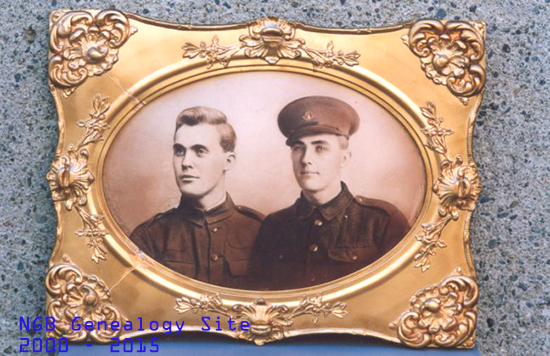 | [Left ] Harold Coish of Ladle Cove Royal Newfoundland Regiment 1400 Died 1 Jul 1916 ~ William Coish of Ladle Cove Royal Newfoundland Regiment # 3200 Died 28 Sep 1917 |
