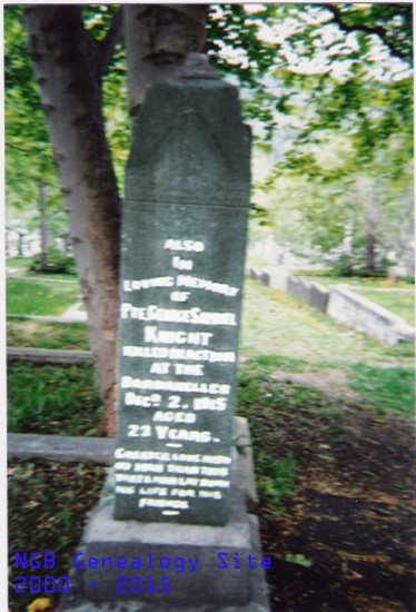 The headstone reads: "Also in loving memory of George Samuel Knight, killed in action at the Dardanelles, 2 Dec 1915, age 21 years. Greater love has no man than this that a man lay down his life for his Friends".