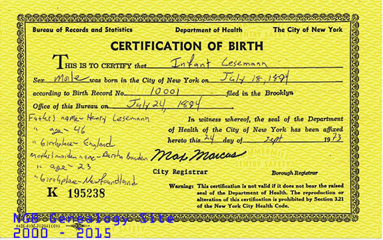 | Roy was born July 18th, 1894 in Brooklyn, New York. He was the son of Henry Leseman [England] and Bertha Bowden [Newfoundland]. He joined the Royal Newfoundland Regiment and was assigned Regt # 220. He died August 18, 1980, in Westfield, Hampden County, Massachusetts. |