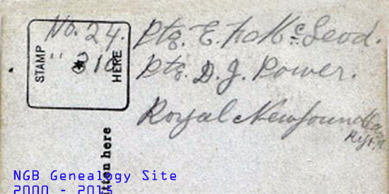 Back of photo No 24 Pte E.F. McLeod No 310 Pte D.J. Power Royal Newfoundland Regt |