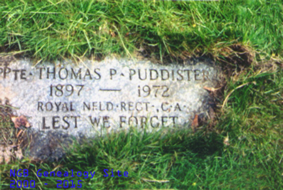 Bulls, NF. He joined the Royal Newfoundland Regt and managed to live through the war. Sometime in his life he moved to Braintree, Massachusetts. He died in 1972 and was buried in the Blue Hills Cemetery. There he remained until just recently when his plaque was discovered by Parker Nadeau. Parker is a retired Deputy Chief from the Braintree Fire Dept, and for the Memorial day services in his town he places flags on veterans graves in the Blue Hills Cemetery. It was during his work this year that he uncovered the flat Metal Marker of Pte Puddister. A veteran himself, Parker intends to care for the marker and ensure that it has a flag to commemorate Pte Puddister's service. |