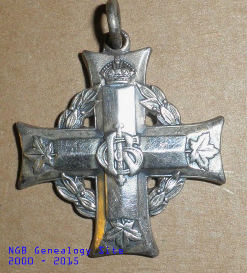The Memorial Cross, the gift of Canada, was issued as a memento of personal loss and sacrifice on the part of widows and mothers of Canadian sailors and soldiers who laid down their lives for their country during the war; its description was as follows: "The Cross will be a Cross patonce in silver suspended by a purple ribbon; at the end of the upright a crown; at the foot, and at the centre, within a wreath of laurel, the royal cypher "G.R.I." It will be engraved with the number, rank and name of the soldiers commemorated."