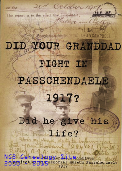 The aims of our project are:1. to build a personal archive of thousands of files which may be researched at the Memorial Museum Passchendaele 1917 2. to create a database with the extracts of all files and extensive research facilities to provide for example the exact location of death on trench maps 3. to select records of 100 men to be stored at the new Visitors Centre shortly to erected near Tyne Cot Cemetery; one for each day of the battle. 4. the composition of a book on Passchendaele 1917 based upon the stories of the fallen. If you have a family member who died at Passchendaele 1917 and would like information or assistance, upon how to ssemble and collate information for our project, please contact: The Passchendaele Archives Jan Van der Fraenen Ieperstraat 5 B-8980 Zonnebeke archives@passchendaele.be tel 0032 51 77 04 41 fax 0032 51 78 07 50 |