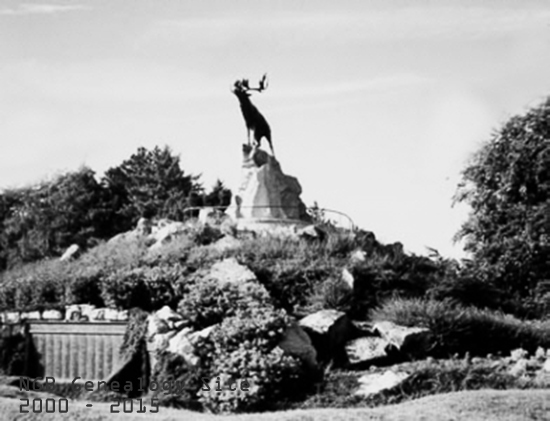 by Colonel G.W.L. Nicholson, C.D. The statue of the Caribou is the emblem of the Royal Newfoundland Regiment. It was the work of the English sculptor Basil Gotto. It is described as a noble stag, standing with head thrown high in defiance, bugling his battle challenge. There are six statues. Clicking on the name or the thumbnail photo will show you an enlarged photo: |