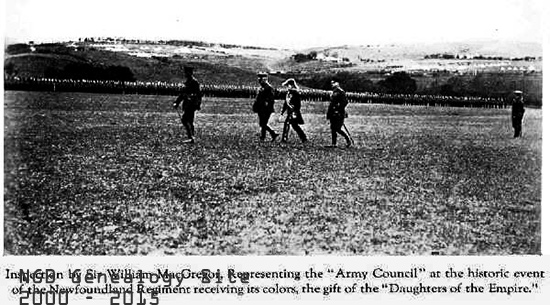 When the great war-cloud burst over the world in August, 1914, Newfoundland was engrossed in her peaceful occupations. From a military standpoint no country could be in a state of greater unpreparedness. Such various Church organizations as the Methodist Guards the Highlanders, the Church Lads’ Brigade and the Roman Catholic Cadets had very little resemblance to a modern military organization, though their ranks became rapidly depleted by the enlistment of the Regiment. And even those organizations were confined to Saint John’s. In the outports there was no group or body of men either in the nature of a military or social organization that could render any assistance as a unit in preparing to fight an enemy. From the standpoint of immediately available untrained men the country was scarcely more prepared than in military organization. It was the time of every year when almost the entire country is engrossed in the prosecution of the cod fishery. Large numbers of men were scattered along the Labrador coast, far from the excitement and anxiety caused by the international cloudburst. And others, a greater number, were engaged in the same work at their homes around the entire Island. They were engrossed in a means of livelihood that could not be put off for a month, or even a week, but a kind of work upon the success of one brief week of which the happiness of the family for the entire year might depend. At any time of the year from October to May the response to a national call would have been many times as great. Government action. The Government, however, lost no time in taking suitable action to meet the emergency. On the eighth of August, Governor Davidson wired the Secretary of State as follows: “Ministers desire authority to enlist special men service abroad by land and sea. Ministers undertake to raise force of Naval Reserve by October 31st to 1000 efficient men available for naval service abroad for one year and are willing to meet all local expense. Several hundred with efficient local brigade training offer Page Five for enlistment for land service abroad. Believe that 500 could be enlisted within one month. Propose to induce serviceable men between 18 and 35 years to enroll themselves in training for home defense wherever corps instructors are available. These will form material for further drafts.” On the following day the Secretary of State replied to Governor Davidson: “Your telegram of August 8th. His Majesty’s Government to raise troops for land service abroad. Will telegraph later as to Naval Reserve.” For the purpose of making good our offer, a preliminary meeting was held on the afternoon of the tenth of August in the Executive Council Chamber, and was presided over by the Prime Minister, Sir E.P. Morris. Besides the Prime Minister there were present at that meeting the Colonial Secretary, Mr. J.R. Bennett; Lieutenant-Commander MacDermott of the H.M.S. Calypso; Inspector General Sullivan; Captain Wakefield, M.D., of the Legion of Frontiersmen; Major Hutchings of the Methodist Guards’ Brigade; Lieutenant-Colonel Rendell of the Church Lads’ Brigade; Lieutenant-Colonel Patterson of the Highlanders; Major Carty of the Catholic Cadet Corps; Captain Goodridge and Captain J.W. Morris of the Rifle Club. On Wednesday night, August 12, a public patriotic meeting was held in he C.L.B. Armory, the purpose of which, as stated by Sir E.P. Morris (now Lord Morris), was to endorse what the Government had already decided on. The enthusiasm of the meeting left no doubt that the public endorsation of the Government’s action was unanimous. During the following week patriotic meetings were held for the purpose of getting together an efficient organization that would bee responsible for the immediate development of a military force. The public spirit ran high. While public excitement, and, in consequence, confusion, would have been more pronounced, the spirit of unselfish patriotism and of resistance of a brutal and militaristic enemy could not have been greater if the enemy were at the entrance of Saint John’s harbor. On August 21, a proclamation was issued by the Governor-in-Council calling for 500 volunteers, If the patriotic meeting of the twelfth lacked anything in the way of demonstrating the public endorsation of the Government’s action that was unquestionably supplied by the public response during the days immediately following the issuing of the proclamation. By the thirty-first of August over 500 had offered their services, mostly from the stores and offices of the Capital City. It is significant that considerably more than half of these hailed from the city brigades. On September 3, the second day of the Legislative Session, Governor Davidson informed the Prime Minister that in response to a telegraphic message he (Governor Davidson) had replied saying that “the Newfoundland Regiment is now 800 strong and going under canvas. Contingent of 500 will be ready to start on the first of October.” Page Six
