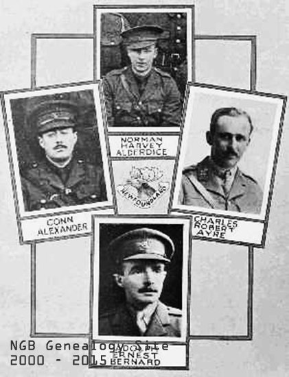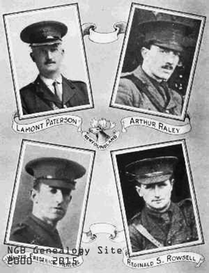 JACOB ABBOTT Reg. No. 168 (No Photo) Enlisted, Sept. 3, 1914; British Mediterranean Expeditionary Force, Nov. 14, 1915; Admitted to Hospital, Suez, Feb. 23, 1916; Embarked Alexandria for British Expeditionary Force, Aug. 27, 1916; Rejoined Battalion in the field. Sept. 21, 1916, Wounded, Gueudecourt, Oct. 12, 1916; Rejoined Battalion, Nov. 18, 1916; Awarded Military Medal, Jan. 14, i9l8; Returned to Newfoundland on furlough July 27, 1918; Demobilized, St. john's, Feb. 15, 1919. ![]() STANLEY ABBOTT Reg. No. 283 Enlisted, Sept. 51 1914; British Mediterranean Expeditionary Force, Aug. 20, 1915; British Expeditionary Force, March 14, 1916; Admitted to Hospital, LeHavre, sick, April 4, 1916; Discharged to duty, May 30, 1916; Killed in action, Beaumont Hamel, July 1, 1916. THOMAS WILFRED ALLEN Reg. No. 263 (No Photo) Enlisted, Sept. 2 1914; British Mediterranean Expeditionary Force, Nov. 14, 1915; British Expeditionary Force, March 14, 1916; Evacuated to Hospital, sick, Oct. 13, 1917; Evacuated to England, Oct. 24, 1917; attached to Depot, Ayr, Jan. 22, 1918; Returned to Newfoundland, July 21, 1918; Discharged St. John's, medically unfit, Sept. 23, 1918. Page One Hundred Ten WILLIAM S. ANDERSON Reg. No. 418 (No Photo) Enlisted, Sept. 11, 1914; Struck off Strength, Stobs Camp, Scotland, July 30, 1915. ![]() JOHN DONALD ANDREWS Reg. No. 315 Enlisted, Sept. 6, 1914; British Mediterranean Expeditionary Force, Aug. 20, 1915; Evacuated Suvla, sick, Oct. 3, 1915; Invalided to England, Dec. 14, 1915; Attached to Depot, Ayr, April 8, 1916; Lance Corporal, April 18, 1916; Acting Corporal, Oct. 16, 1916; British Expeditionary Force, Dec. 30, 1916; Evacuated to Hospital, April 14, 1917; Rejoined Battalion, June 19, 1917; Evacuated to Hospital, July 22, 1917; Invalided to England, July 29, 1917; Attached to Depot, Ayr, Sept. 3, 1917; Acting Sergeant, Sep. 27, 1917; Confirmed to Rank of Corporal, April 27, 1918; Acting Company Sergeant Major, June 5, 1918; Confirmed to Rank of Sergeant, June 5, 1918; Embarked for Newfoundland on furlough, July 21, 1918; Demobilized, St. John's, Feb. 15, 1919. ![]() RALPH MARTIN ANDREWS Reg. No. 55 Enlisted, Sept. 2, 1914; Lance Corporal, July 28, 1915; British Mediterranean Expeditionary Force, Aug. 20, 1915; British Expeditionary Force, Mar 14, 1916; Corporal, July 12, 1916; Sergeant, Feb. 8, 1917: Wounded, Sailly-Saillisel, March 3, 1917; Attached for duty to Pay and Record Office, London, July 21, 1917; Discharged, medically unfit, No25, 1918. Page One Hundred Eleven ![]() ARCHIBALD ASH Reg. No. 575 Enlisted, Sept. 22, 1914; Lance Corporal, Sept. 2,9, 1914; Acting Corporal Dec. 5, 1915; Sergeant, Feb. 3, 1916; British Expeditionary Force Oct. 3, 1916; joined Battalion, Oct. 14, 1916; Killed in action, Sailly-Saillisel, Feb. 23, 1917; Mentioned in dispatches, April 9, 1917 Click here for more on Sgt Ash ![]() WILFRED DOUGLAS AYRE Reg. No. 164 Enlisted, Sept. 16, 1914; Corporal, Sept. 21, 1914; Sergeant, Oct. 30, 1914; Acting Company Quartermaster Sergeant, July 12, 1915; 2nd Lieutenant, Oct. 16, 1915; British Expeditionary Force, March 13, 1916; Killed in action, Beaumont Hamel, July 1, 1916.