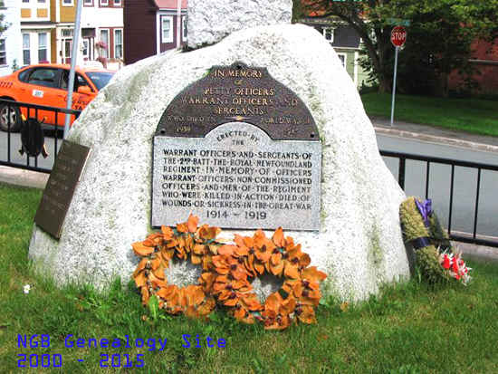 2nd Battalion, The Royal Newfoundland Regiment in Memory of Officers, Warrant Officers, Non-Commissioned Officers and Men of the Regiment who were Killed in Action, Died of Wounds or Sickness in the Great War 1914 ~ 1919 |
