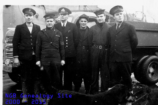 George Ettie [far left] and others on the docks at HMCS Avalon [Nov 1941]