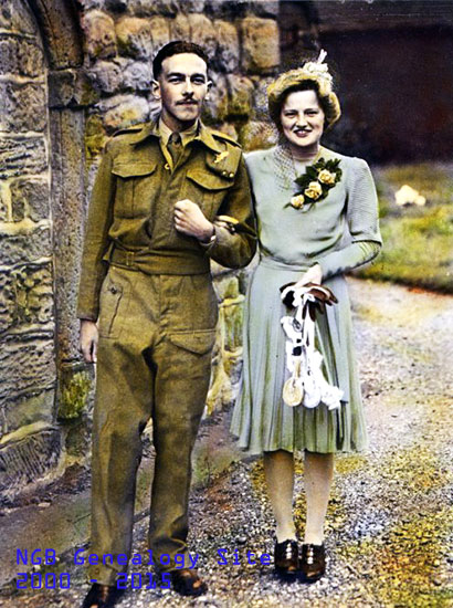 Lilly Brown Garland. He enlisted in the 166th Royal Artillery in March of 1940 (# 970306). He served in Africa and latter married in Scotland and lived there until his death on August 12, 2005. The above photo is of Garland and his future wife Elsie. Donated by Keith Brown. |