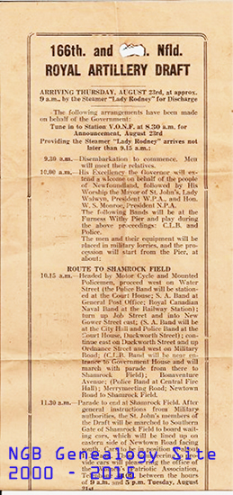 Stanley George Hall, Regimental # 970425, 166th Fd [NFLD] Regt. R.A. The link below lists a Nominal Roll that Stanley had in his possession. On the back of page 5, Stanley had sketched the ensignias for different regiments. On the back top of page 6 there were some scribbles. Donated by John Hall [Son]