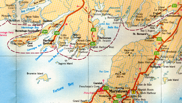 Fortune Bay District Genealogy Site This is a good starting point for people researching their ancestors in Newfoundland's Fortune Bay District. This site contains information from the communities within the Fortune Bay district, along the north and east coast from Pass Island, in the west, to just north of Garnish, in the east, as shown on the accompanying map. Anyone can contribute material to this site. If you have information that would be a benefit to others researching their family histories in the Fortune Bay District, please contact the coordinator listed below. Since this site is new please be patient as we continue to develop it. Come back often. |