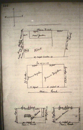 Will of Joseph Miller from Newfoundland will books volume 14 pages 543-545 probate year 1929 In re DECEASED. My land and other property I hereby will to my four daughters (viz) Alice, Ellen Marion, Phebe Florence, and Jennie Delphene. To my daughter Alice I give and bequeath my dwelling house, Barn, Cellar, and all other outhouses, also all live stock that may be on the place at the time of my death, also all the land on the south of the main road and bounded as follows, on the north by the main road 180 feet, on the west by Arthurs Allens land Mrs. James Allens land, Robert Barnes land, Sidney Bursells on the south west corner by Walter Barnes land. On the south by Gordon Millers land, on the East by Gordon Millers land to the main road. This land contains seven or eight acres more or less. To my daughter Ellen Marion (Mrs. W. H. Strong) I will and bequeath all that piece of land between the main road and the sea shore bounded as follows, on the south by the main road 138 feet on the west by Mrs Hugh Bairds land, on the north by the sea shore measuring 128 feet on the east by Ananias Millers land. To my daughter Phebe Florence I will and bequeath the property known as the old house, now used and occupied by her as Postal Telegraph Office and Post Office measuring on the main road south 170 feet bounded on the east by Mrs Hugh Bairds land and a lane going to the sea shore for the use of this property and Mrs Bairds on the north by the sea shore measuring 157 feet 6 ins on the west by her sister Jennie Delphene's land. To my daughter Jennie Delphene I will and bequeath all that piece of land situate north of the main road and bounded on the west by J. J. Butlers land on the North by the sea shore on the east by her sister Old House Property and on the south by the main road measuring by the main road 160 feet. I hereby appoint my son in Law W. H. Strong to be sole executor of this my last will and testament. JOSEPH