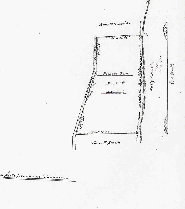 under said piece or parcel of Land Provided always and this present Grunt is upon condition that the same Grant be registered in tile Office of Registry of our Supreme Court of Newfoundland within Six months next after the day of the date hereof or otherwise that the same shall be void and of non effect. Provided also that this present Grant is upon further condition that the said Lands shall be holden upon under and subject to such regulations as are now in force or which may at any time hereafter be made by Law for making Roads, Sewers, Drains, Canals, Bridges or other Public Works or Improvements within out said Island or any part thereof and for subjecting any Lands therein situate or the owners or occupiers of such Lands to rates and assessments or other duties or services for the purposes aforesaid or for any of them. And that the said John Roach, his heirs and assigns shall at all times peaceably quit and deliver up possession to Us our heirs and successors of all such parts of the Lands aforesaid as may be required for the purposes aforesaid or any of them upon receiving such compensation (if any) as by any Law now in force or hereafter to be made in that respect may be provided. Given under the Great Seal of the aforesaid Island of Newfoundland at St. John's in the said Island this twenty-sixth day of January in the Year of Our Lord One Thousand Eight Hundred and Forty eight in the Eleventh year of our Reign. Witness our trusty well-beloved Sir John Gaspard Le Marchant, Knight and Knight Commander of the Most Distinguished Order of St. Michael and St. George, our Governor and Commander-in-Chief in and over our said Island and its Dependencies, etc. By His Excellency's Command Signed (by hand): James Crowdy Received the day and year above written from the within named Grantee the Sum of Five Shillings amount of the Consideration Money of the land herein granted 0-5-0 [5 shillings] MAP of Property - attached…..