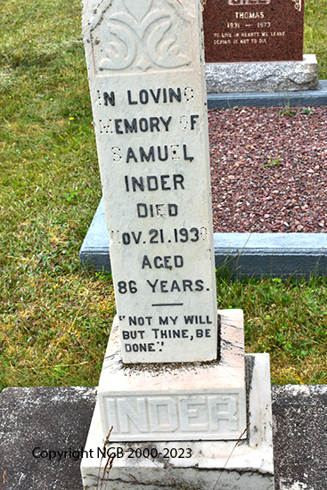 | SAMUEL INDER Died: Nov 21, 1930 Aged: 86 Years |