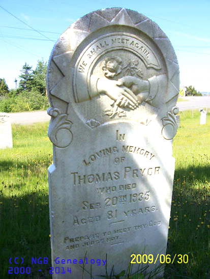 | THOMAS PRYOR Died: Sep 20th 1935 Aged: 81 Years |