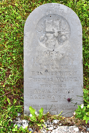 | EMELINE WHITE Died: April 10th 1895 Aged: 40 Years Beloved Wife of Thomas White |